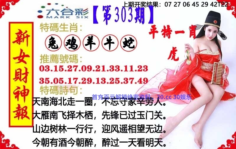 303期:七肖中特╠虎蛇兔马猪鸡羊╣开:兔15准 |